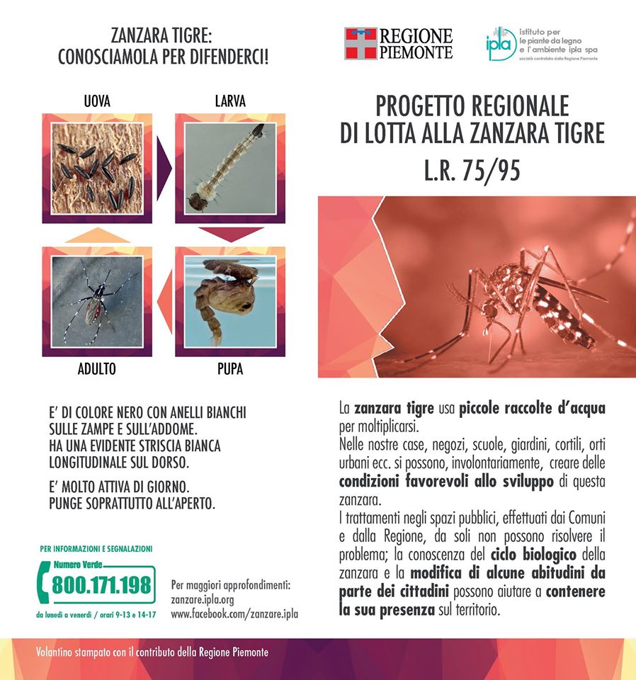 Il Comune di Condove anche per l'anno 2021 ha aderito al progetto regionale di lotta alla zanzara tigre (L.R. 75/95).
