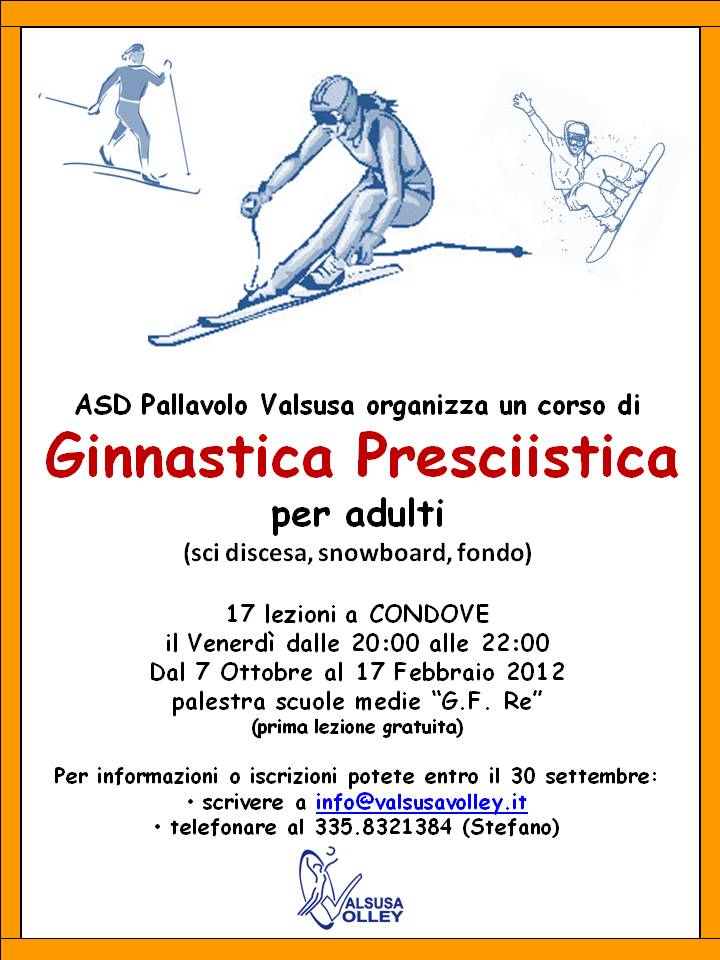 Dal 7 Ottobre ricomincia a Condove l'attività di presciistica per adulti
